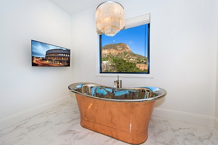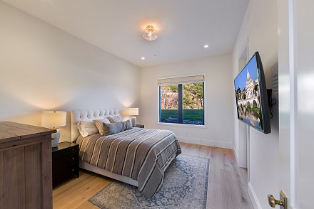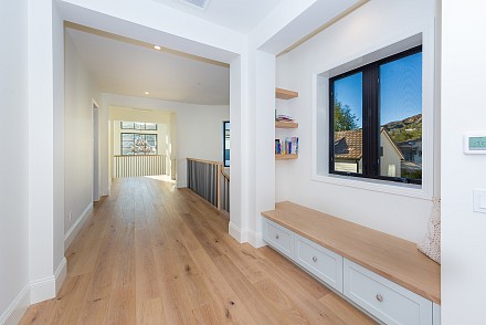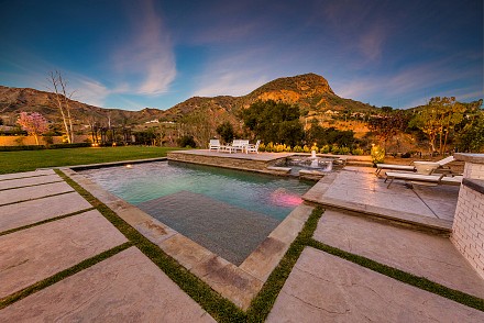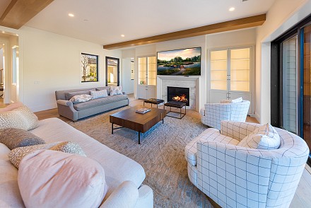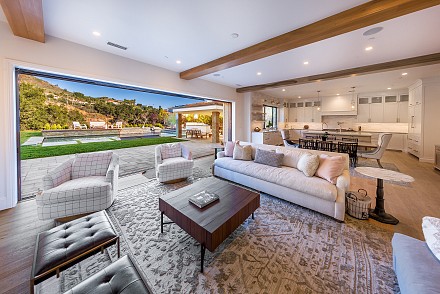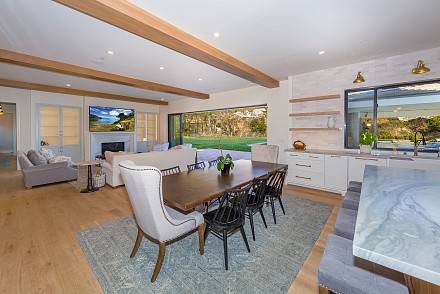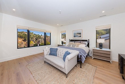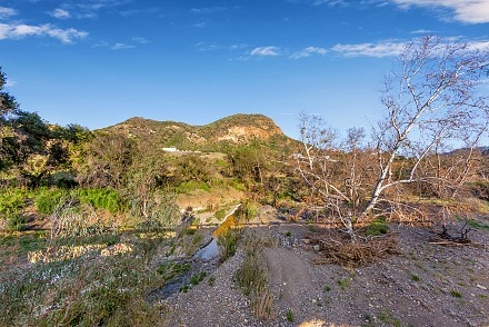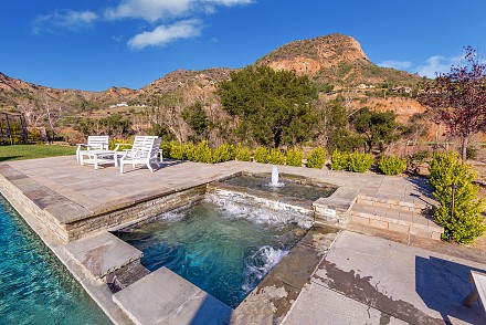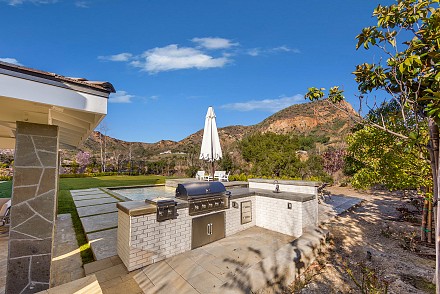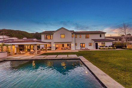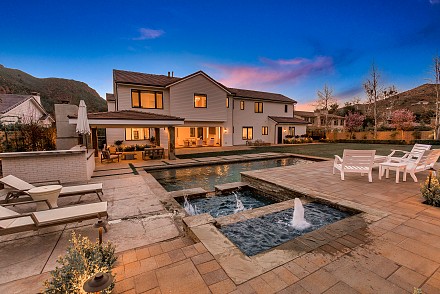 Beautiful newly built (2020) modern farmhouse within a gated community, nestled on 1.6 acres with Triunfo Creek meandering through back yard and offering sunrise and sunset mtn views. Light Oak flooring,10 foot ceilings up & down, Dolomite center island kitchen w/ Wolf, Sub Zero, Asko appliances, polished nickel fixtures, and a net zero energy efficient home with owned solar system. Family room w/ fireplace & window wall opening to gorgeous backyard. All 6 ensuite bedrooms w/Primary retreat appointed w/copper tub, dual walk-in closets, double vanity, marble shower & fireplace. Secondary bedrooms are spacious each with individual design & custom tile work. A bonus gym up and a den/office down. Formal living w/fireplace along w/formal dining. Backyard is extraordinary; extensive landscape lighting highlighting the trees and gardens, large lawn, pool, spa w/fountain, firepit, covered patio with TV & fireplace. Explore Triunfo Creek, oftentimes full of water and wildlife. 2 car attached garage and 2 car detached with expansive parking courtyard. Enhanced electrical system, extra gypcrete between floors to minimize sound between floors. the location is superb with easy access to the 101, beaches, nearby conveniences & state and national recreational areas.