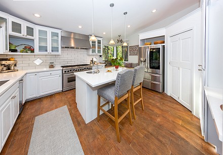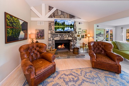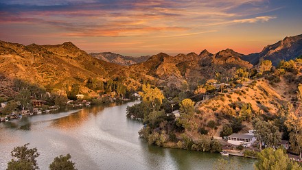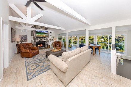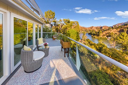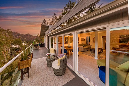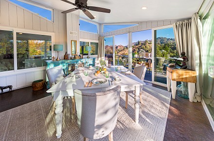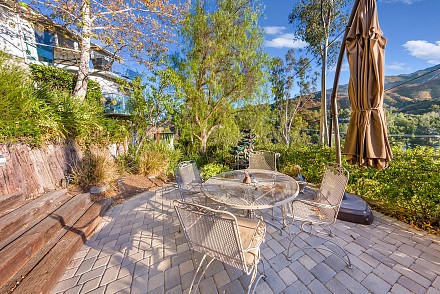 Stunning Malibou Lake view home perched on a bluff capturing breathtaking mountain and lake views. Multiple sitting areas, large wrap around deck and private dock site offer unique picturesque perspectives of the the lake and Malibu Creek State Park. A double door glass entry opens to living area with window wall, beamed ceilings and stone fireplace. Gorgeous remodeled kitchen w/Quartz counters, stainless steel appliances, breakfast nook and bar. A large dining/sun room with multiple glass sliders allows the natural light in and offers the views out. 3 en-suite bed and baths, 1 up and 2 down with a large primary offering another viewing patio. The garage is oversized and includes an attached office currently being used as a 4th bedroom with a powder. The yard is beautifully landscaped and highlighted by a tree house and cedar spa. Members at Malibou Lake enjoy boating, swimming, fishing, tennis, community pool plus year round events from Softball games, fishing derbies, picnics and other fun parties. Located minutes from the 101 fwy and close proximity to beaches, conveniences & situated within the Las Virgenes School District. This is the way life is meant to be lived!