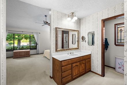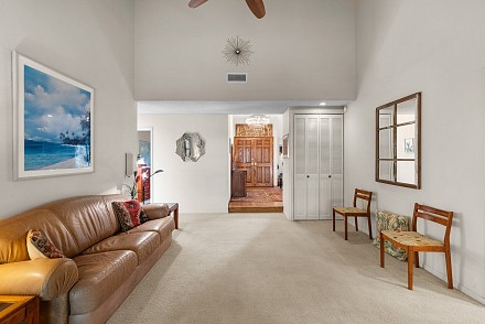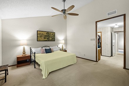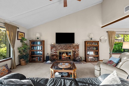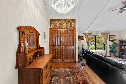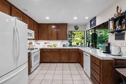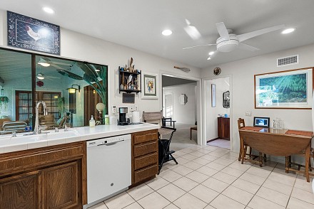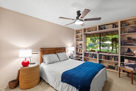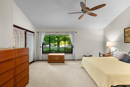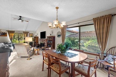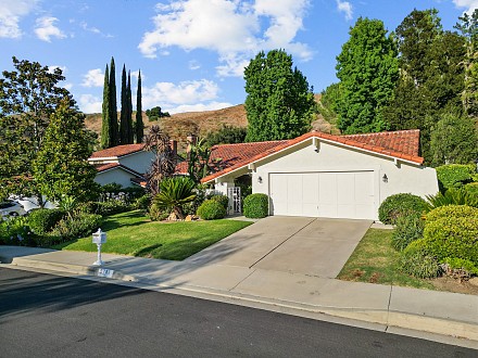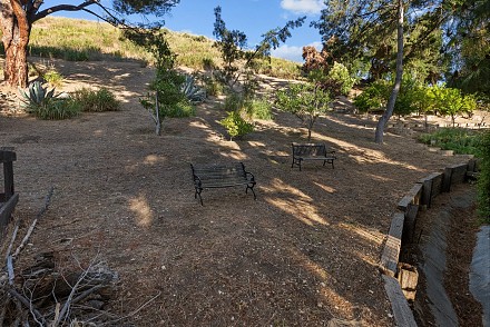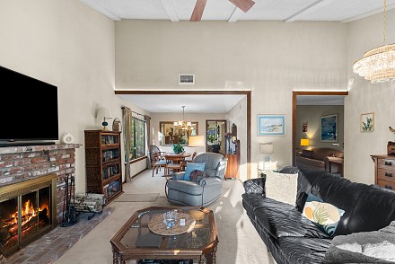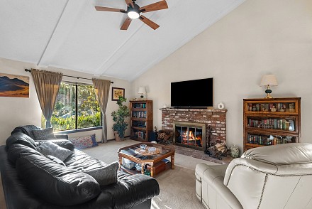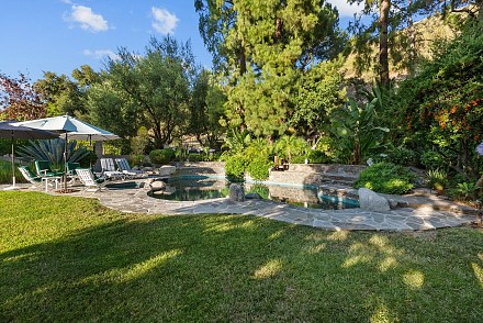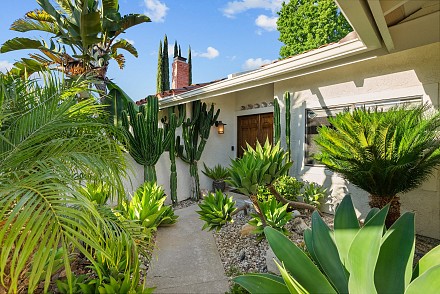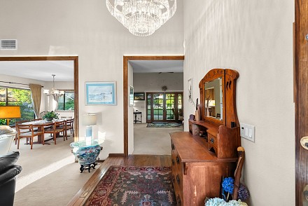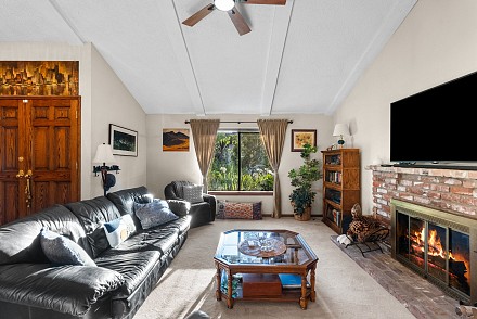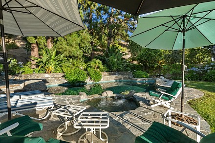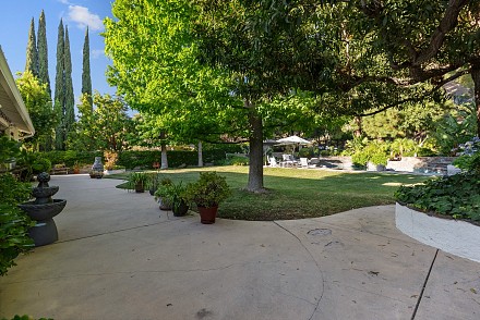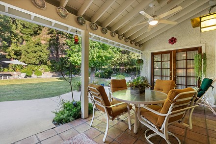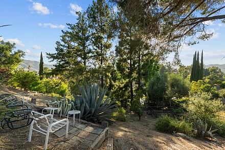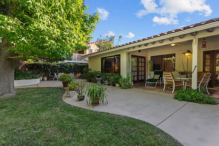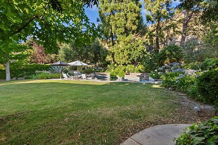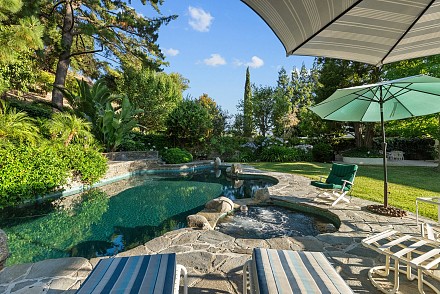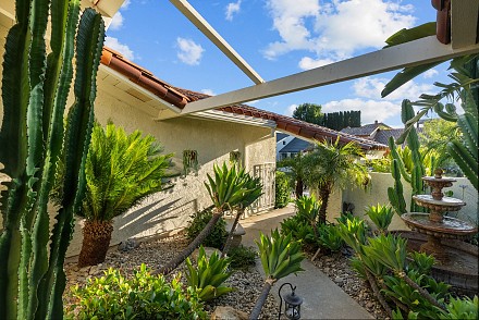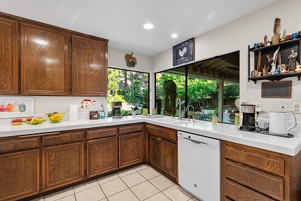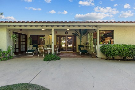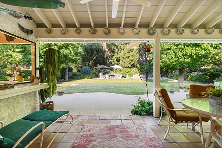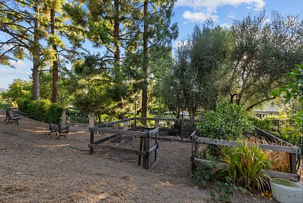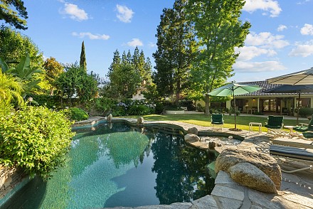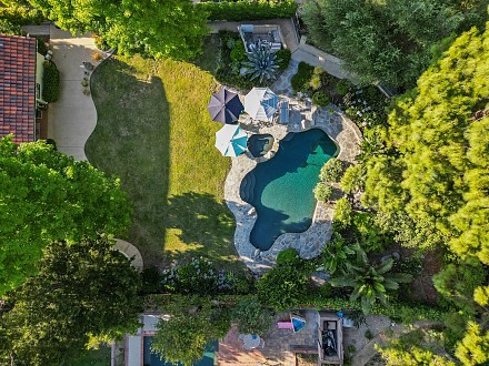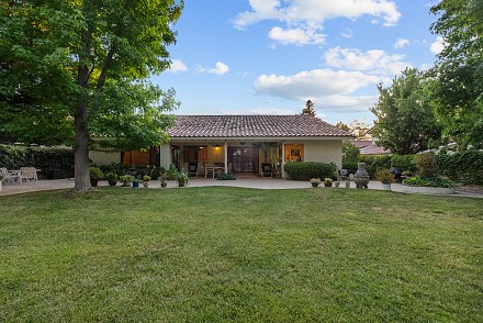 Oasis like backyard with incredible private setting. Huge lawn, pool, spa, lush landscaping beautifully maintained, mature trees, fruit trees, olive trees and large garden area. Single story with pitched beamed ceiling in living room and pitched in primary. French doors lead out to the gorgeous yard from living room and primary. Stunning succulent landscaped front entryway. Most of home is in original condition but very well maintained. One bath has been remodeled. Kitchen and living room windows view out to Saltillo tile covered patio. Large primary suite with walk-in and extra closet. Secondary bedrooms have lovely view windows and share the remodeled bath. Brick fireplace living room with shared dining area. Nestled at the top of Fountainwood with easy access to elementary and high school. Large roomy lots like this are very hard to find and make for the ideal outdoor California lifestyle.