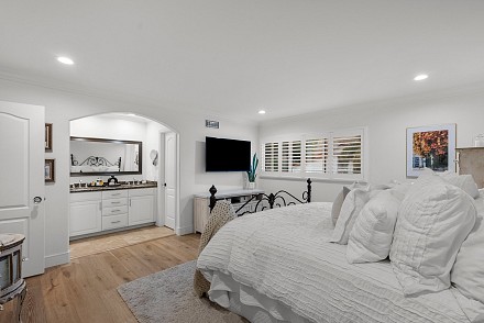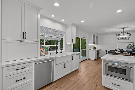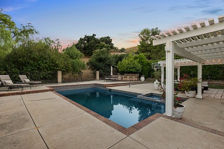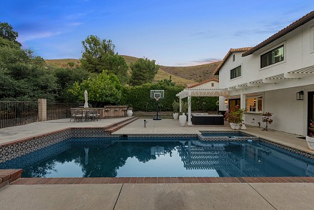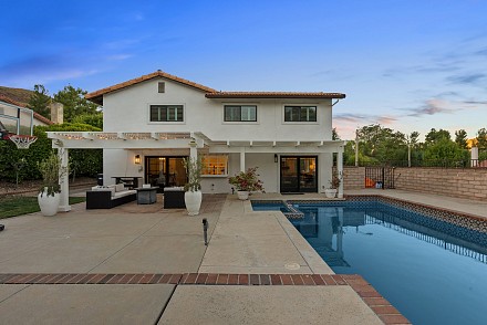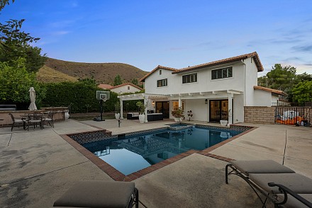 Beautifully remodeled on an exceptional cul-de-sac street in Westlake Village in close proximity to a fantastic park and nearby to most conveniences. This is a top to bottom remodel from flooring to windows, kitchen, bathrooms, fixtures, fireplace, lighting and the list goes on. You do not want to miss this opportunity. Gorgeous double door entry leads into wonderful living area with soaring ceiling and spectacular fireplace. Kitchen features newer cabinetry, Quartz counters, stainless steel Thermador appliances, breakfast nook w/wine fridge, tile back splash and appliance pantry. Mediterranean Kerrew wood floors throughout home including the wide plank stairs. Dual pane windows, custom wood shutters, wainscoting and tastefully placed niches for display. Newer smooth stucco, garage doors and stone facade. Newer heat and air dual zone system. Large back yard with pool, spa, built in BBQ and wonderful privacy, ideal for entertaining and all the outdoor fun. Top of the development location with mountain, valley and treetop views.