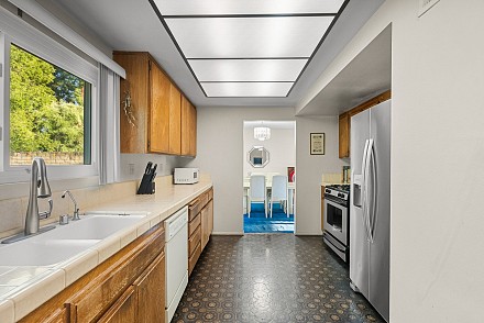 Original beauty with a popular floorplan large back yard with nearby access to a beautiful park. Living room has soaring ceilings with brick fireplace and adjacent to large dining room. Kitchen opens to dining and additional living area with sliders exiting to rear yard. All bedrooms up with spacious primary and walk in closet. Roomy secondary bedroom with treelined views. Dual pane windows throughout, Upgraded HVAC. Light and open, 3 car garage. No rear neighbor w/community space between. Easy access to 101 and most conveniences. A perfect opportunity to create and design your own flair and style.