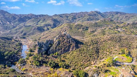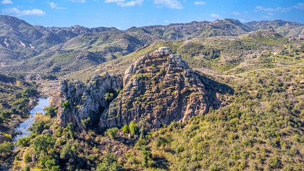 The Preeminent lot on Malibou Lake. Towering and panoramic views overlooking Malibou Lake and Sugarloaf Mountain as well as the rocky crags of Malibu Creek State Park and Triunfo Creek as it meanders through the park and past the Old Mash TV film site. This 3/4 acre is perched like no other and captures the awe-inspiring views. Plenty of flat building areas along with an existing approx 800 sq ft structure that remained. The ultimate in privacy and serenity coupled with an incredible community. There is a private dock site attached with this parcel for your year-round water fun including: paddle boarding, swimming, kayaking, fishing and so much more. Besides the private forty-acre lake, the community provides a beautiful clubhouse, pool, tennis, pickleball, and year-round events, parties and live music on the lake that can keep your social calendar full. In all of Southern California, one would be hard pressed to find a location that offers such a lifestyle. Situated within the Lass Virgenes School District, minutes from the 101 fwy and most conveniences and a short jaunt over to the ocean. Yes, Malibou Lake is spelled differently than Malibu because it is different, come find out why!