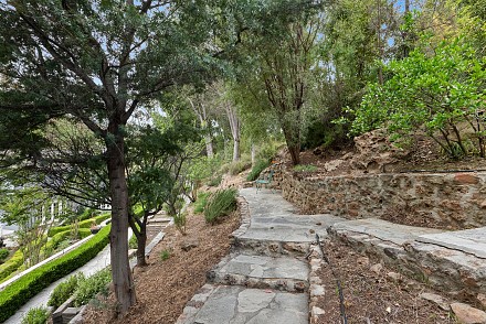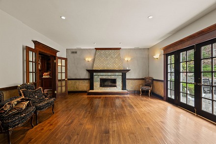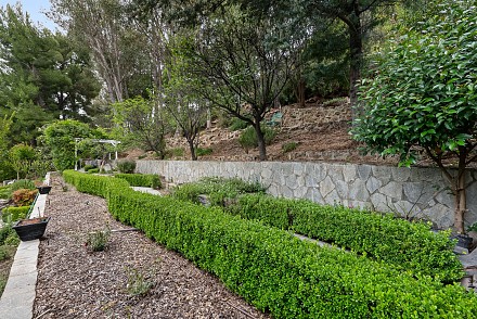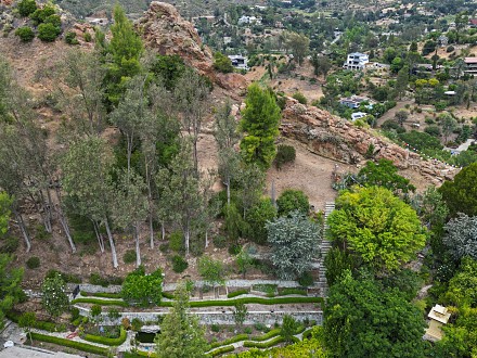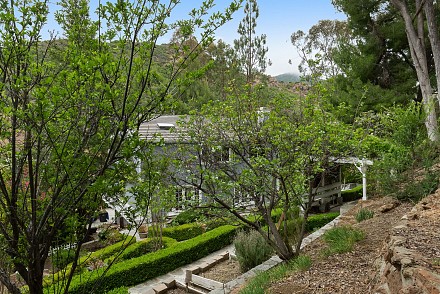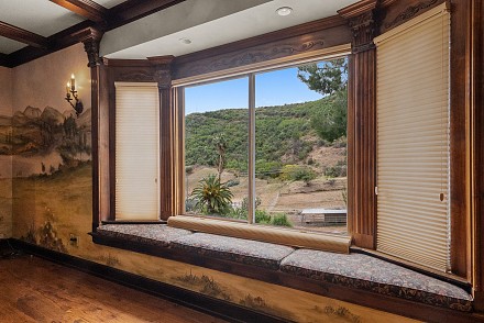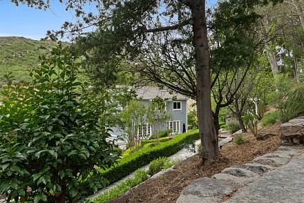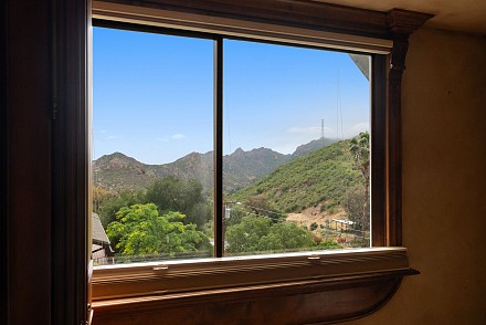 Three unique fireplaces anchor the primary suite, family room, and formal living room, while custom built-ins and stainless-steel appliances complement the gourmet kitchen and formal dining space, which also features a wine refrigerator and a substantial wine locker. Nearly every window frames panoramic mountain views, and the property invites outdoor exploration with meandering garden paths, custom stone hardscape, fruit trees, sitting areas, a koi pond, and even a small private forest. Direct access to the back entrance of Malibu Creek State Park makes hiking and adventure effortless. Located in an award-winning school district, just minutes from the freeway and beaches, this home feels a world away yet it's incredibly close to everything. A rare opportunity to live in a place that feels both grounded in nature and elevated in design.