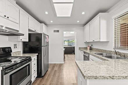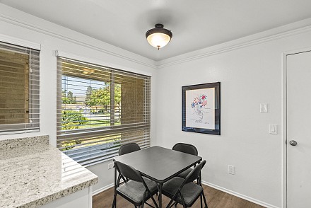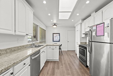 Welcome to the incredible community of Leisure Village, where comfort meets convenience in this light and airy home. This beautifully maintained unit features high ceilings, creating a sense of openness throughout the living space. With 2 spacious bedrooms and 2 bathrooms, this home is both functional and inviting. The granite kitchen, complete with stainless steel appliances, opens seamlessly to the living and dining areas—perfect for entertaining or relaxed everyday living. Impeccably clean and truly move-in ready, this home also includes a 1-car attached garage and an enclosed private patio, offering a peaceful spot to enjoy your morning coffee or evening breeze. Located in a gated community with 24-hour security, Leisure Village offers amazing amenities including a clubhouse, pool, fitness center, golf, tennis, walking paths, and more, ideal for an active and social lifestyle. Don’t miss your chance to live in one of the most sought-after 55+ communities in the area!