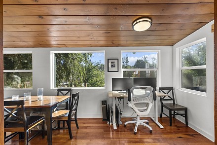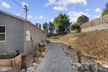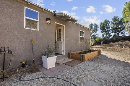 Welcome to 5429 Fairview Place, where modern comfort meets country charm in one of Agoura Hills' most sought-after neighborhoods. Tucked into the heart of Old Agoura, this beautifully remodeled 1 bedroom, 1 bath home offers 880 (per assessor) square feet of thoughtfully updated living space on a rare, over half-acre lot — the perfect canvas to build your dream estate, expand the existing home, or simply enjoy a peaceful, rural lifestyle just minutes from the city. Remodeled in 2024, the home blends rustic character with contemporary style. Inside, you'll find a stunning knotty pine ceiling, original refinished wood floors, butcher block countertops, and recessed lighting throughout. The converted patio offers additional usable space and charm, while dual-pane windows, new doors, new drywall and insulation bring year-round comfort and energy efficiency. The all-electric design features newer stainless steel appliances, a mini split system for heating and cooling, and a newer washer/dryer. Motion lights and a gravel driveway add convenience, while raised garden beds inviting you to grow your own vegetables or flowers under the shade of mature trees. Surrounded by multi-million dollar estates,