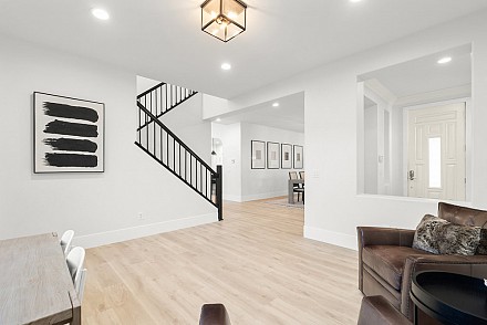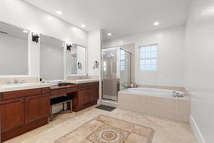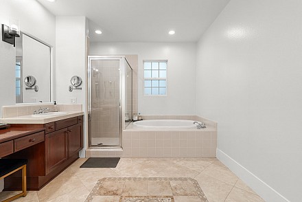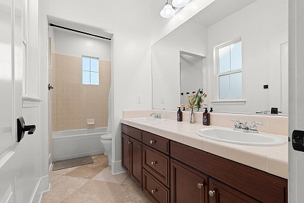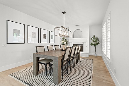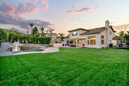 Experience the best of Dos Vientos living at 106 Via Ricardo, an elegant 4-bedroom, 3-bath home tucked within the scenic and highly sought-after Avignon enclave. Filled with natural light and thoughtfully updated throughout, this home sits on a generous lot surrounded by lush landscaping and offers a true resort-style backyard. Step inside to a bright, open layout with high ceilings and expansive windows that frame views of the backyard and nearby mountains. The recently remodeled kitchen is a standout feature, showcasing a large quartz island, high-end appliances, abundant storage, and a clean, modern-yet-timeless design. The adjoining family room feels airy and inviting with its vaulted ceilings, upgraded fireplace, and views of the outdoor oasis. The desirable floorplan includes a roomy downstairs bedroom with a nearby full bath—ideal for guests, a home office, or multigenerational living. Upstairs, the primary suite offers peaceful backyard views, dual walk-in closets, and a spacious en-suite bath with dual vanities, a soaking tub, and a separate shower. Two additional upstairs bedrooms are filled with natural light, and the conveniently located upstairs laundry room includes ample cabinetry. The backyard is where this home truly shines.