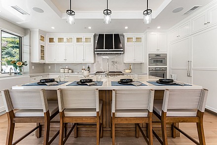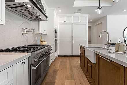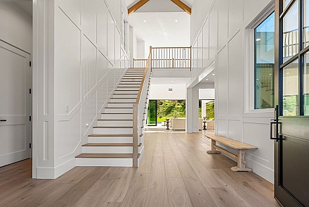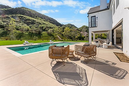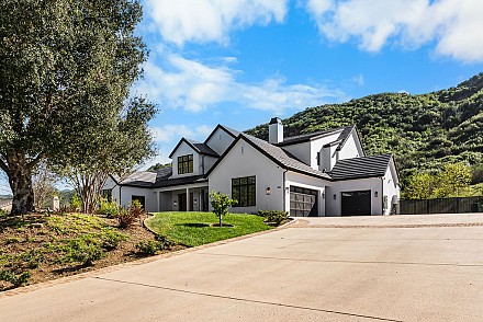 Experience the perfect blend of luxury, comfort, and California living in this newly completed Modern Farmhouse, ideally positioned behind gates and backing directly to the protected open space of the Santa Monica Mountains. With over 5,400 sq ft of refined living space on more than an acre. This estate offers fresh air, gorgeous mountain views, privacy, and the kind of elbow room that's increasingly rare. Step inside to soaring ceilings, wood-paneled accent walls, and wide-plank oak flooring that flows throughout. The heart of the home is a stunning chef's kitchen featuring high-end Thermador appliances, a massive quartzite slab island with breakfast bar seating, and custom cabinetry designed for both beauty and function.