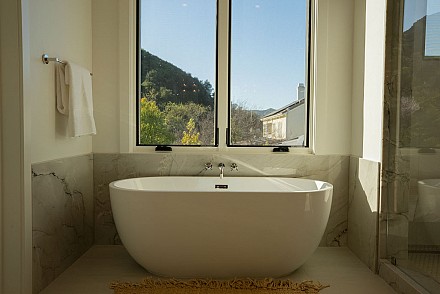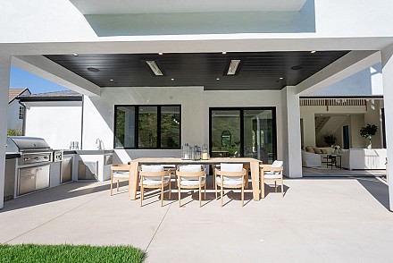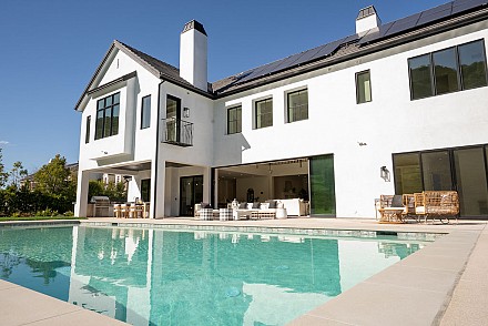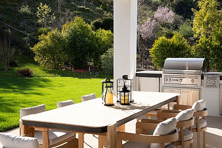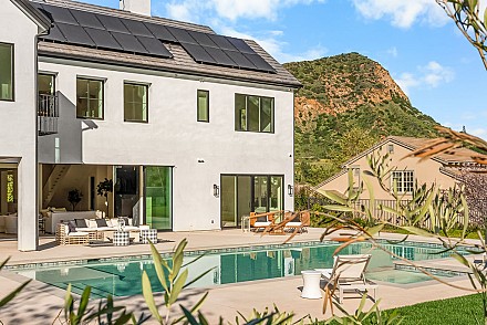 A recessed pocket wall allows the glass panels to fully retract, creating an uninterrupted transition between the main living area and the stunning backyard. A spacious game room and five en-suite bedrooms, including an incredible primary retreat with dual walk-in closets and a spa-like bath with soaking tub. These rooms ensure comfort for family and guests alike. Designed for modern living, the home is equipped with solar power supported by Tesla power wall, Control4 wiring, and 5.1 surround sound. Restoration Hardware lighting adds a sophisticated touch to every room. The outdoor spaces are equally impressive. Enjoy a resort-style spool and spa, a fully equipped outdoor kitchen, covered patio area with ceiling heaters and a large grassy backyard framed by breathtaking mountain views. Whether entertaining or unwinding, this setting delivers unforgettable moments day and night. Located just minutes from the 101 freeway, local beaches, and everyday conveniences, the community is enhanced by the natural beauty of Triunfo Creek running through it, an absolute idyllic entry to this exceptional property. A rare opportunity to own a modern estate that truly has it all: space, style, technology, and a setting that feels worlds away yet close to everything.